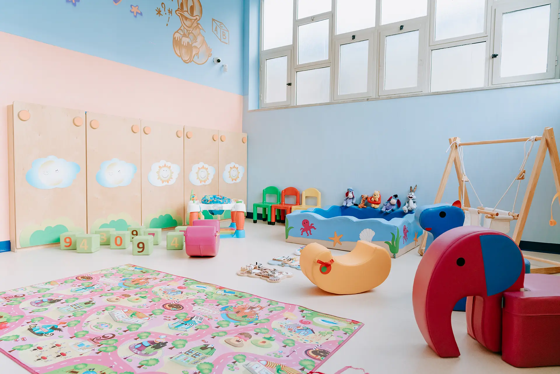 La sede Kidville di Giugliano ospita nido, scuola dell’infanzia e scuola primaria in spazi moderni, sicuri e progettati per accompagnare i bambini lungo tutte le fasi della crescita.